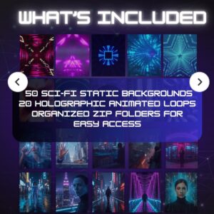 ✔ Includes 30+ high-resolution sci-fi holographic backgrounds